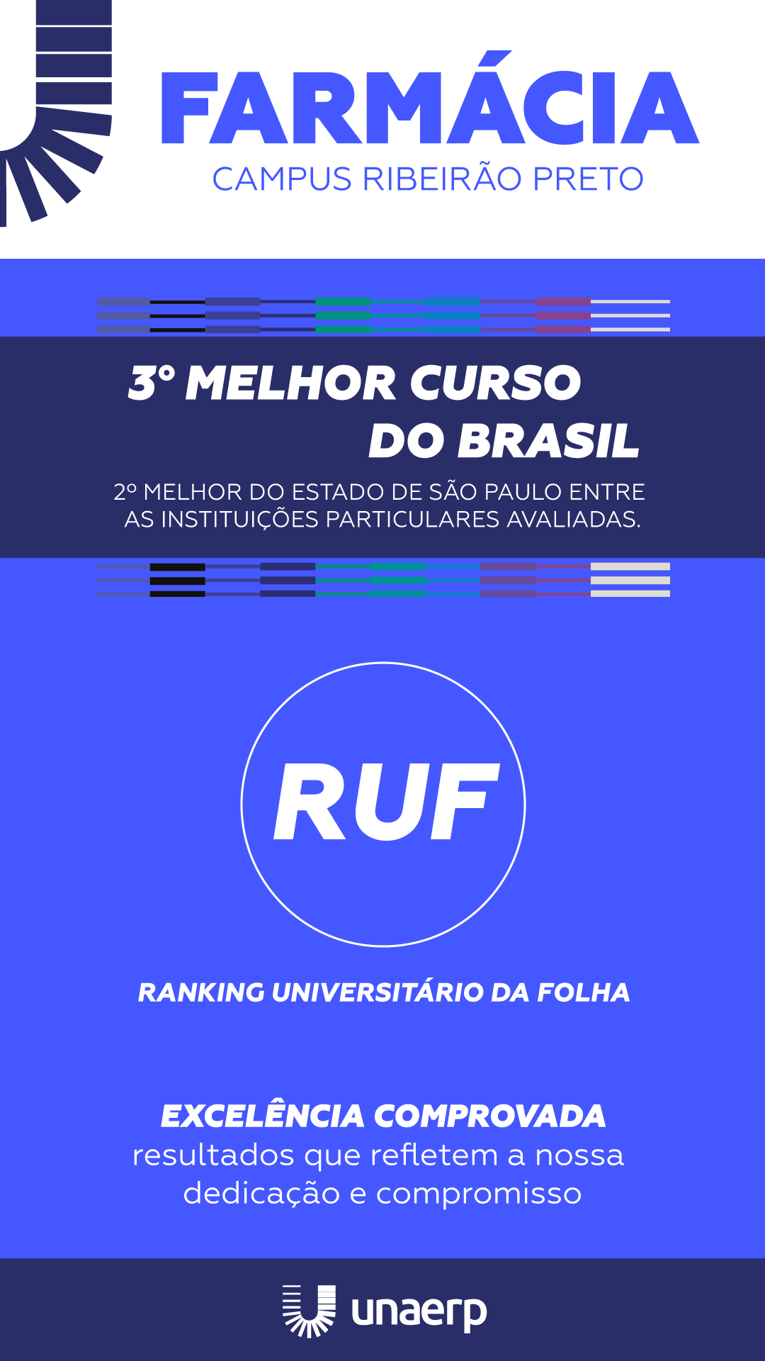 - 3º melhor curso do Brasil entre 522 instituições particulares avaliadas (RUF 2024 – Ranking Universitário Folha de S. Paulo).