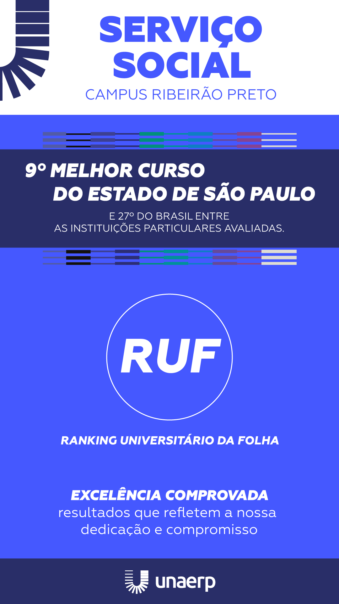 O curso de Serviço Social da Universidade de Ribeirão Preto - Unaerp tem por objetivo formar assistentes sociais críticos, inteirados do processo histórico enquanto totalidade por meio da concretude da tríade Ensino, Pesquisa e Extensão. Para tanto, se referencia às diretrizes curriculares da Associação Brasileira de Ensino e Pesquisa em Serviço Social - ABEPSS, que propõe como princípio formativo a capacitação teórico-metodológico, ético-político e técnico-operativa, para a apreensão crítica que possibilite o entendimento dos desafios que o assistente social se depara, frente aos processos sociais contemporâneos que conformam a sociedade brasileira.