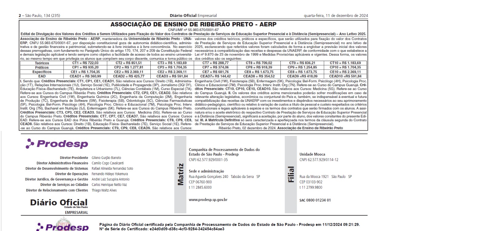 Publicaçao Jornal 11-12-2024 Doesp Prodesp Unaerp