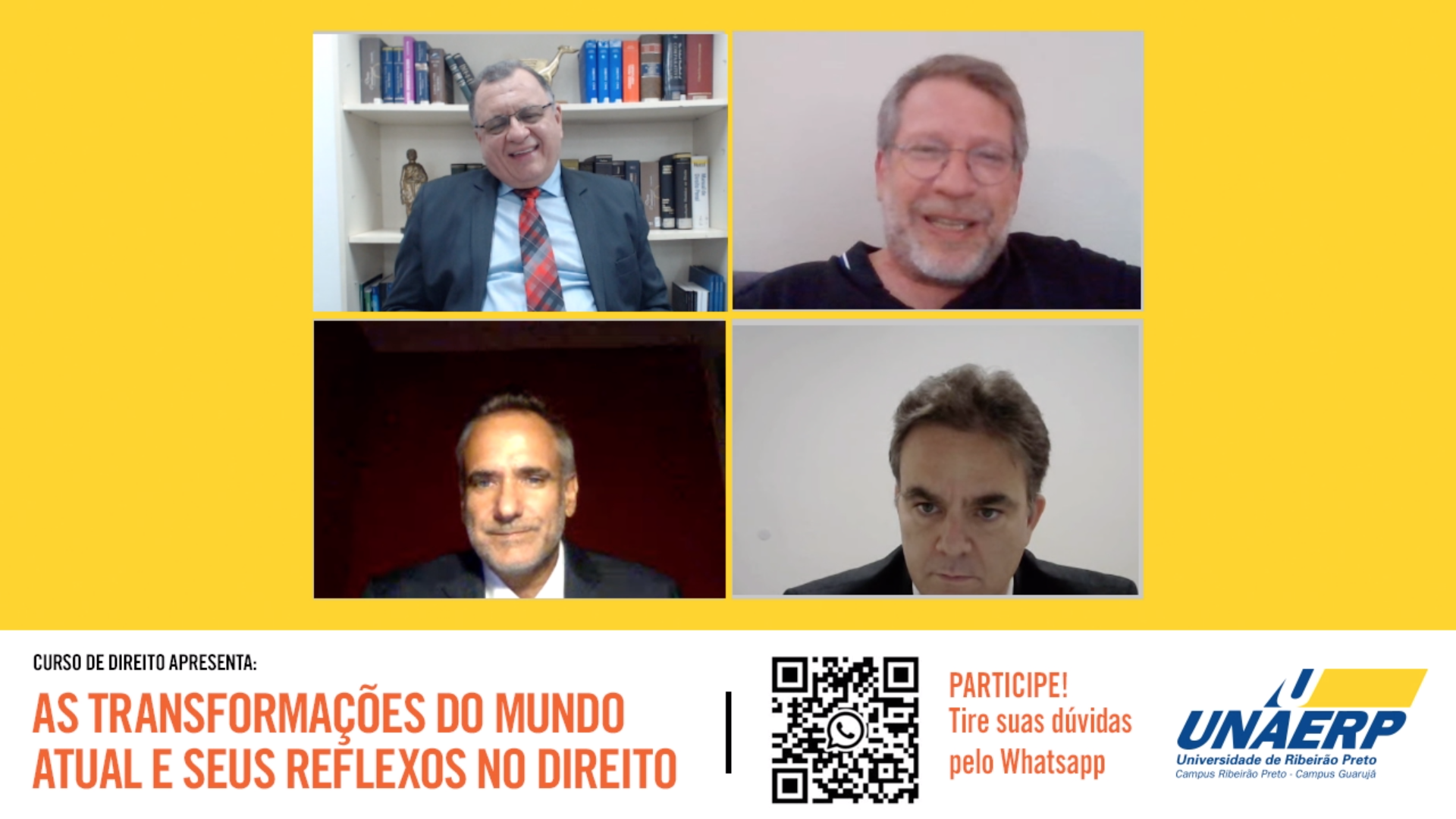 Last Monday, the 17th, the live “The transformations of the current world and its reflexes in Law” was broadcast on the Unaerp website and on the Unaerp TV channel on YouTube. The event, promoted by the Law course and by the Stricto Sensu Graduate Program in Law at the University, aimed to update students on the subject and bring information to society, democratizing knowledge.