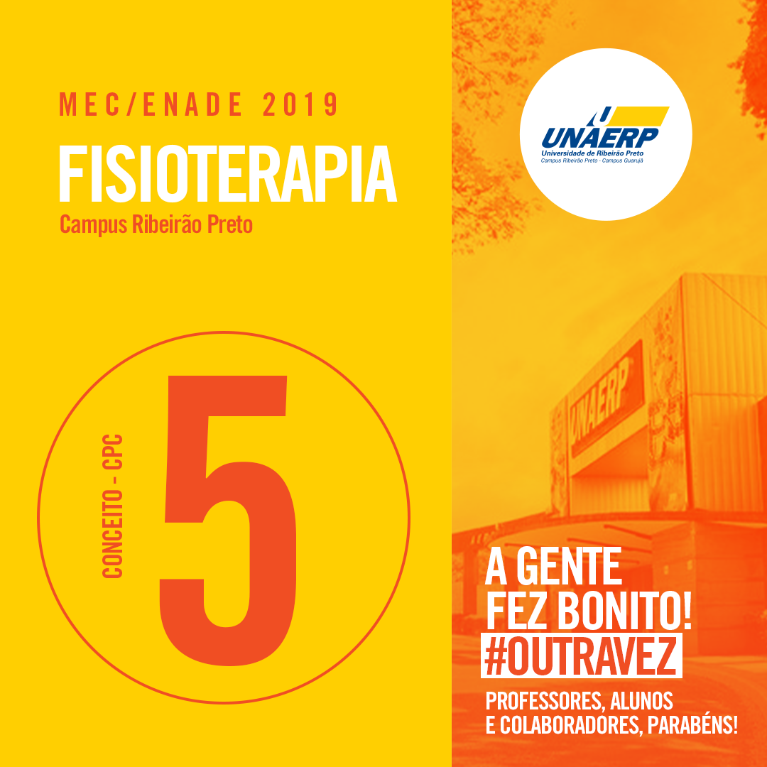 Dos 8.188 mil cursos de graduação avaliados pelo Ministério da Educação (MEC) em 2019, apenas 2,6% têm nota máxima, 5, no CPC (Conceito Preliminar de Curso). Dentre esses, apenas trezes cursos de Fisioterapia alcançaram a maior nota, sendo que somente dois são do estado de São Paulo: o da Unaerp e um da capital paulista. O INEP/MEC divulgou hoje as avaliações de cursos de ciências agrárias, saúde, engenharias e arquitetura e urbanismo.