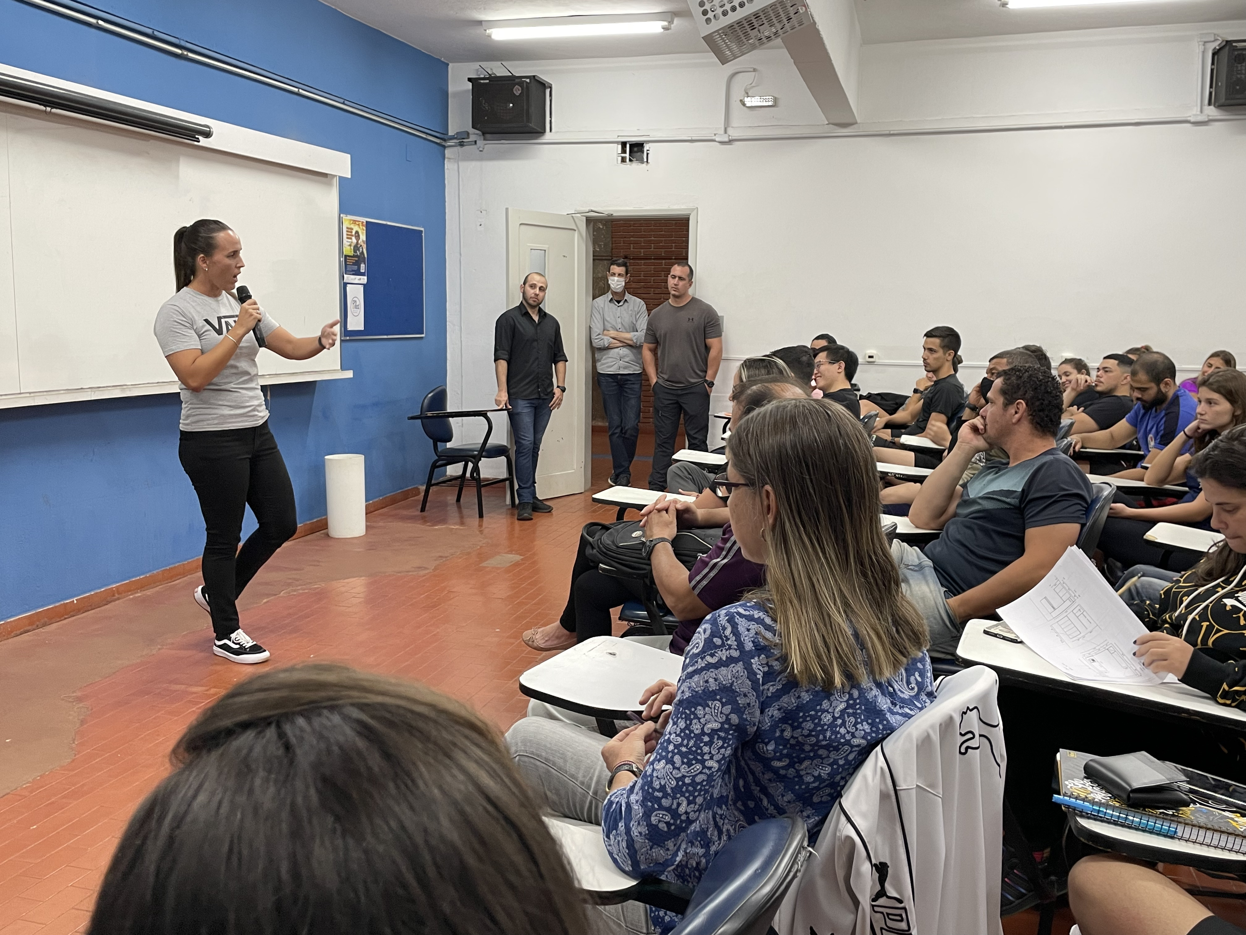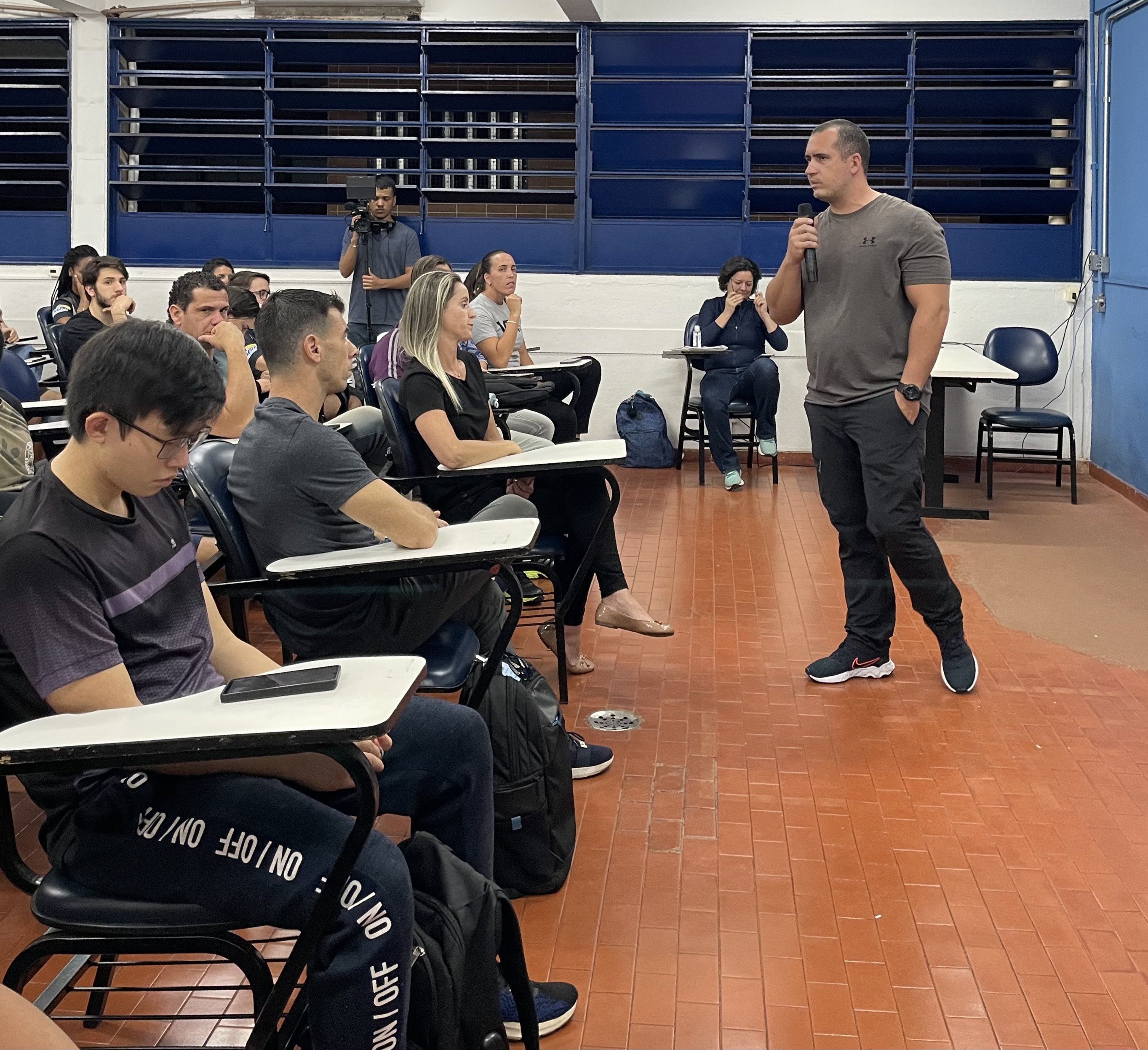 Daniel Diniz Bertoni, coordenador do Poliesportivo da Unaerp, se formou em 2004 e compartilhou com os alunos sua trajetória acadêmica, a inserção no mercado de trabalho e as experiências vivenciadas após a formação. "Falei sobre o conhecimento que busquei e adquiri e, principalmente, o que a graduação em si, além do mestrado que eu fiz, deu como base para eu me fortalecer. O que eles vão levar da faculdade e que será usado lá fora".