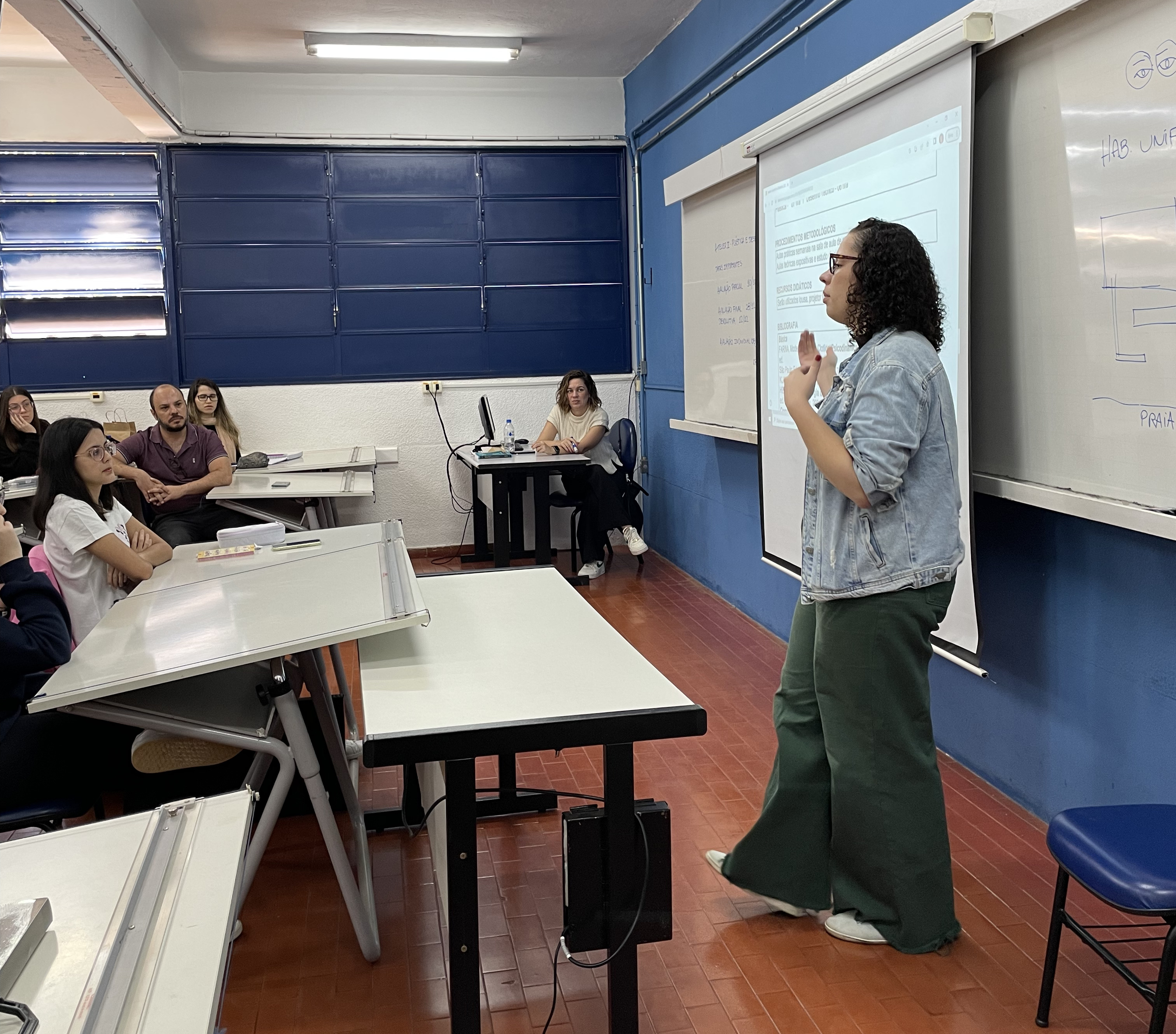 A egressa Kelly Cristina Souza da Silva, do curso de Arquitetura, voltou à Universidade para contar aos alunos sobre a trajetória durante o curso, além de áreas de atuação no mercado de trabalho. “O Programa é uma atividade muito enriquecedora porque chegamos sem entender, principalmente em Arquitetura, tudo o que a Universidade tem a oferecer. Então, alguém de fora vir falar sobre isso deixa um pouco mais claro que a Arquitetura não é só construir casa”.