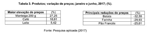 Na avaliação de cada item da cesta, composta por 13 produtos alimentícios, estava mais caro fazer café da manhã em junho. Isso porque a manteiga (27,25%), o café (18,61%) e o leite (5,42%) registraram aumento de preços. Por outro lado, os outros dez itens sofreram redução, sendo que as maiores quedas de preços foram a batata (-32,55%), o pão francês (–25,61%), a banana (–24,98%), o arroz (–18,36%) e o óleo (–10,54%). Conforme orientação do DIEESE (2017), a partir do mês de junho de 2017 foi considerada a farinha de mandioca para as regiões norte e nordeste e a farinha de trigo para as demais regiões.