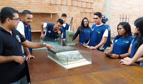 Na última quarta-feira (13), 30 adolescentes do projeto Jovem Aprendiz Legal do Centro de Integração Empresa Escola (CIEE) participaram da Vivência nos cursos de Engenharia da UNAERP. Durante a visita, eles viram o processo de destilação da cana de açúcar para produção de álcool etílico no laboratório de química. Já no Centro Tecnológico das Engenharias, aprenderam sobre o processo de pavimentação e as camadas que compõem as ruas e avenidas das cidades. Eles também tiveram pequena aula de AutoCad, software de desenho técnico usado em diversas áreas da Engenharia.