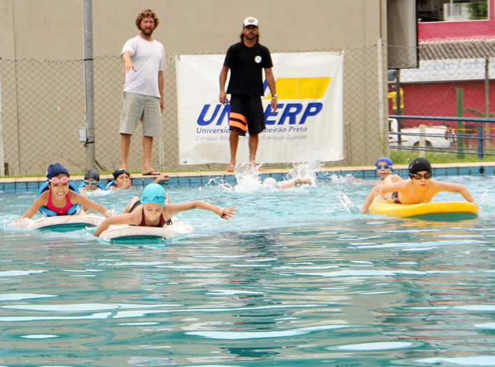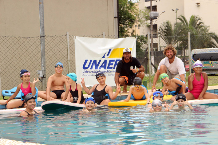 A iniciativa beneficia crianças e adolescentes com aulas gratuitas, às terças-feiras, na piscina do complexo esportivo da UNAERP Guarujá. A oficina integra o Núcleo de Projetos Sociais da Universidade que, em parceria com a Fundação Fernando Lee, promove várias atividades voltadas à comunidade.