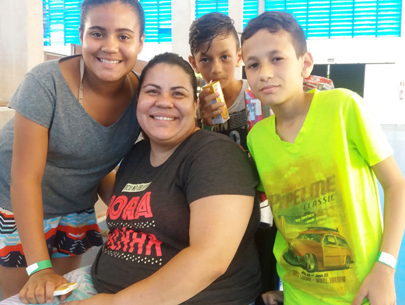Denise e Manuel Elesbão dos Santos acompanharam os filhos Emanuelle e Thiago, que são alunos das oficinas de Surf na Piscina e Jiu jitsu, e parabenizaram a Universidade pelas ações sociais. “Eles adoram fazer as atividades na Universidade. Agradecemos à UNAERP e a todos que colaboraram”, disse Manuel Elesbão.