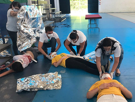 Ao todo, foram três atividades práticas de Simulação Realística: uma colisão entre carro, moto e ônibus; a segunda foi um colapso de estrutura na arquibancada de um estádio de futebol; e na terceira simulação, um veículo desgovernado atropela pessoas em uma manifestação pacífica. O protocolo START, usado pelos serviços de urgência e emergência como SAMU, Bombeiros e equipes de resgate, prioriza o atendimento quando o número de vítimas ultrapassa a quantidade de socorristas.