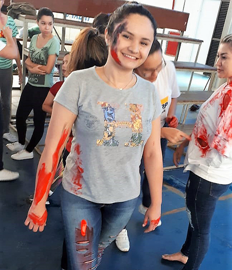 A estudante Jéssica Trigueiro sentiu essa adrenalina quando atuou tanto como socorrista quanto vítima. “Passamos uma tensão, os machucados estavam bem reais. No dia em que atendi, fiz a classificação de risco dos feridos e até trabalho de parto. Tivemos que pesquisar sobre os protocolos. A adrenalina, a pressa em tentar salvar todo mundo foi muito gratificante, aprendemos bastante. E quando fui vítima, nos colocamos no lugar dos pacientes ao usar o colar cervical ou ao sermos transportados. E o tempo é o maior vilão”, destaca a aluna.