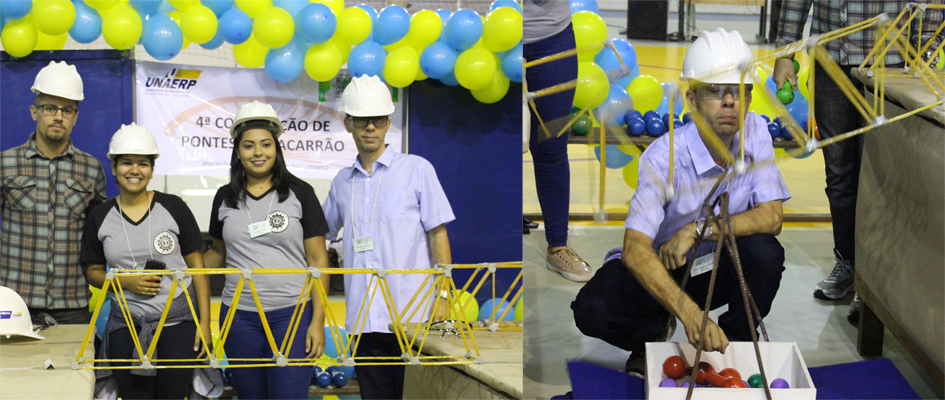 Para finalizar a programação, os estudantes de Engenharia participaram da 4ª edição do Concurso Pontes de Macarrão, em que os grupos são desafiados a planejar e executar o projeto da construção de uma ponte feita de macarrão, com dimensionamento da capacidade de suportar determinada carga de peso.