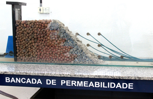 Durante a simulação, uma réplica de uma barragem foi montada no equipamento Bancada de Permeabilidade para mostrar o efeito do rompimento, como explica o coordenador Marcio Tavares. "Essa unidade experimental de permeabilidade de solos é usada em aulas práticas para análises de caracterização de solos e testes de permeabilidade. São usados também para ensaios de pressionamento de dispositivos de medição de vazão para vertedores e barragens, e permite visualizar do comportamento desses materiais quanto à distribuição de cargas que nelas foram depositadas."