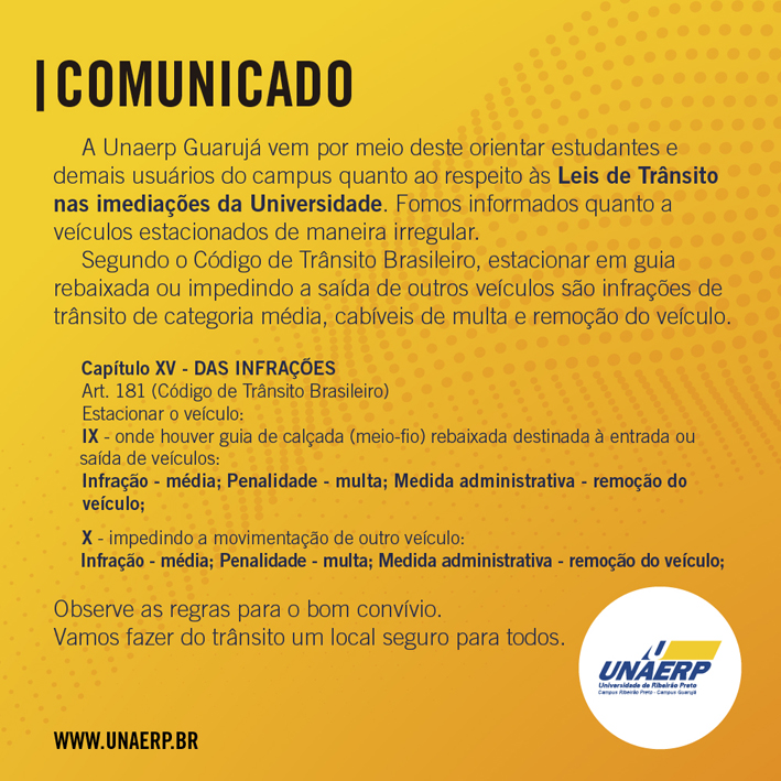 Comunicado - leis de trânsito