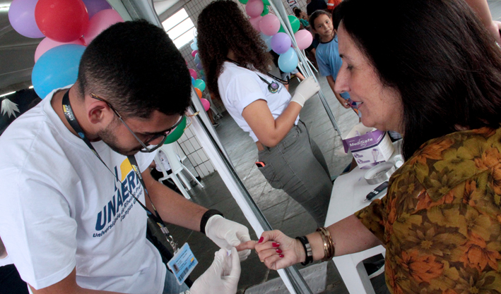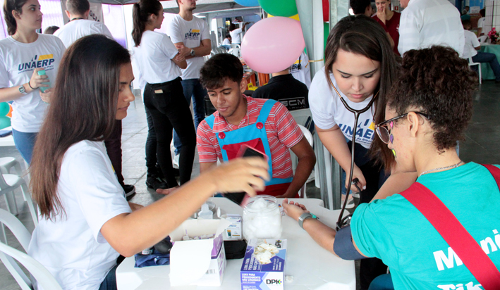 Na tenda da Unaerp, alunos e professores de Medicina realizaram aferição de pressão arterial, teste glicêmico, medidas antropométricas e orientações sobre prevenção de doenças, como diabetes e hipertensão. “Essas ações reforçam os conhecimentos que os alunos adquirem nas aulas teóricas e nas aulas de habilidades na Universidade”, ressalta o professor de Medicina, Élcio Roque Kleinpaul. A analista Evelin Andrade aproveitou para ver como estava sua saúde. “Eu aferi a pressão com a equipe da Unaerp, verifiquei a glicemia para ver a taxa de açúcar no sangue, e acho importante esse evento porque há uma interação muito grande com a população”.