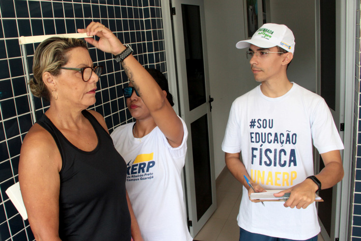 Alunos e professores fizeram medições antropométricas na população, dentre elas, índice de massa corporal para detecção de peso normal, sobrepeso ou obesidade; relação cintura-quadril quanto ao risco de problemas cardiovasculares; e ainda, o percentual de gordura, que pode sinalizar uma gordura visceral aumentada. “Após essas mensurações, os participantes receberam orientações dos professores mediante as necessidades encontradas”, explicou o coordenador do curso, Prof. Rogério Lucena.