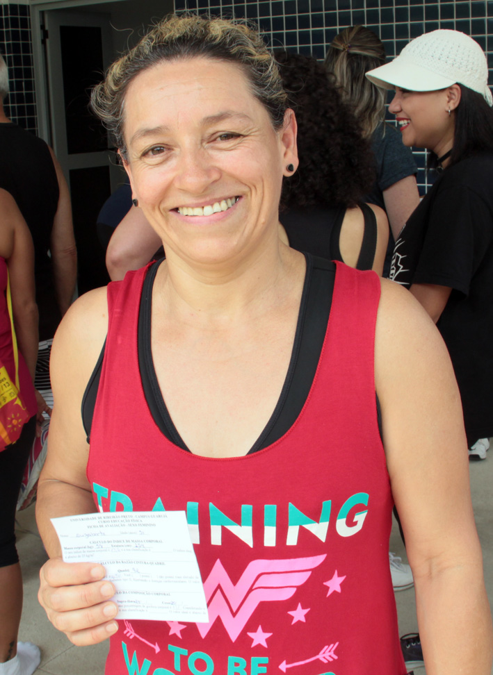 Antonia Vieira Gomes Nazaré gostou atendimento da Unaerp. “Já faço atividade física e essa avaliação ajuda muito, pois sabendo o que precisamos fazer fica mais fácil controlar.” Euzabete Luzia Silva Saraiva foi orientada a ficar atenta à possibilidade de diabetes e hipertensão. “Minha massa está magra, mas meu problema está no quadril e cintura, pelo risco de diabetes e hipertensão devido a casos na família. Mas o resto está tudo em ordem.”