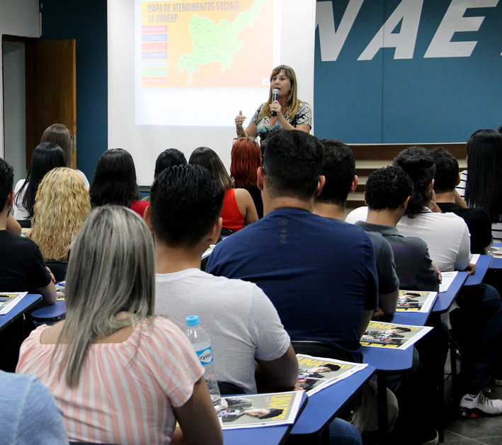 Durante a recepção, os calouros puderam saber mais sobre a história da Universidade, os serviços de apoio ao estudante e toda a atuação da Unaerp nas áreas de pesquisas e de projetos sociais. A pró-reitora Priscilla Bonini Ribeiro destacou a importância desse momento.