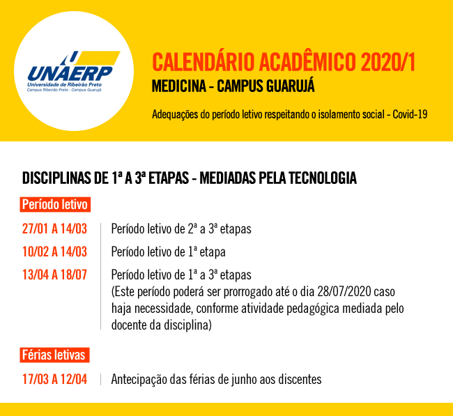 - Clique aqui para ver o calendário de Medicina do campus Guarujá.