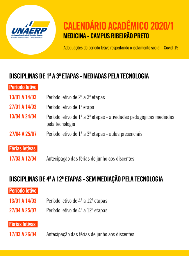 - Clique aqui para ver o calendário de Medicina do campus Ribeirão Preto;