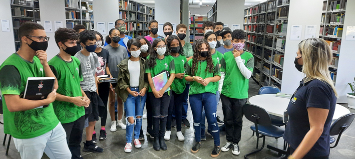 Estudantes do 2º ano do Ensino Médio da ETEC Alberto Santos Dumont de Guarujá tiveram uma tarde diferente de encontro com o conhecimento. No dia 8 de abril, eles vieram até o campus Guarujá para desenvolverem atividade prática de pesquisa na Biblioteca da Universidade e ainda conheceram a infraestrutura da instituição.