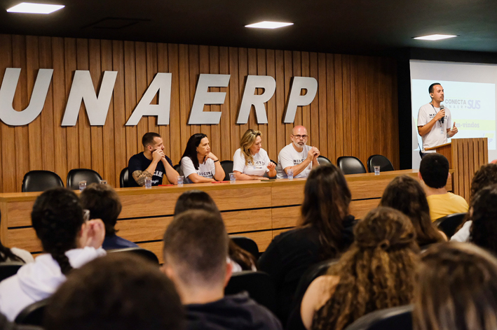 Início das atividades - A abertura do Conecta SUS foi realizada nesta segunda-feira (26/09) na Unaerp Guarujá, com a presença da diretora-geral da Unaerp Guarujá, Profa Dra Priscilla Bonini Ribeiro, do coordenador da Medicina Unaerp Guarujá, Prof Dr Geraldo Magela Nogueira Marques, da supervisora Acadêmica, Profa. Me. Nazareti Pereira Ferreira Alves, do presidente do Centro Acadêmico Evandro Bonini, Gabriel Testa, e de um dos coordenadores do Conecta Sus, Prof Dr Eduardo Carvalho de Souza. O docente de Medicina, Prof. Dr. José Cláudio Garcia Lira, Neto também integra a equipe de organizadores da ação.