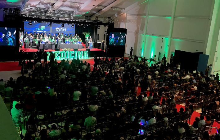 A chanceler da Unaerp, Vanessa Bonini Panico, também destacou a importância da formatura de novos médicos e da contribuição para a área da saúde. “Celebramos um legado que muito nos honra: a formatura da primeira turma de Medicina da Unaerp Guarujá, é a prova de que a perseverança, o propósito, a contribuição social por meio da Educação Superior podem transformar sonhos em realidades palpáveis”, declarou a chanceler.