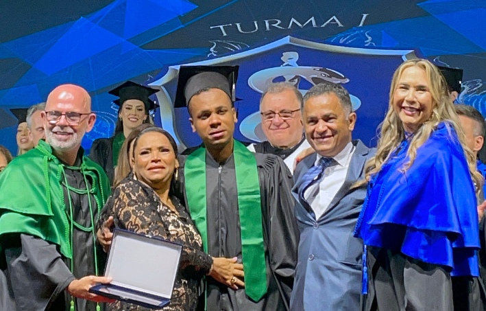 O médico formado, Carlos Henrique da Silva Martins, também de Guarujá e um dos bolsistas pela Lei Municipal, foi homenageado como aluno destaque da turma. “Isto coroa tempos de muito estudo e de muita dedicação. Mas nada seria conseguido sozinho. Não é uma conquista apenas minha, mas de toda a faculdade, do corpo docente e discente também”. Seus pais, Salatiel Carlos Martins e Edilza Ferreira da Silva Martins, vibraram com a indicação. “Agradeço por esta oportunidade dele ter feito o curso de Medicina. Agora, meu filho Carlos é médico”, celebrou, com emoção, a mãe Edilza Martins.