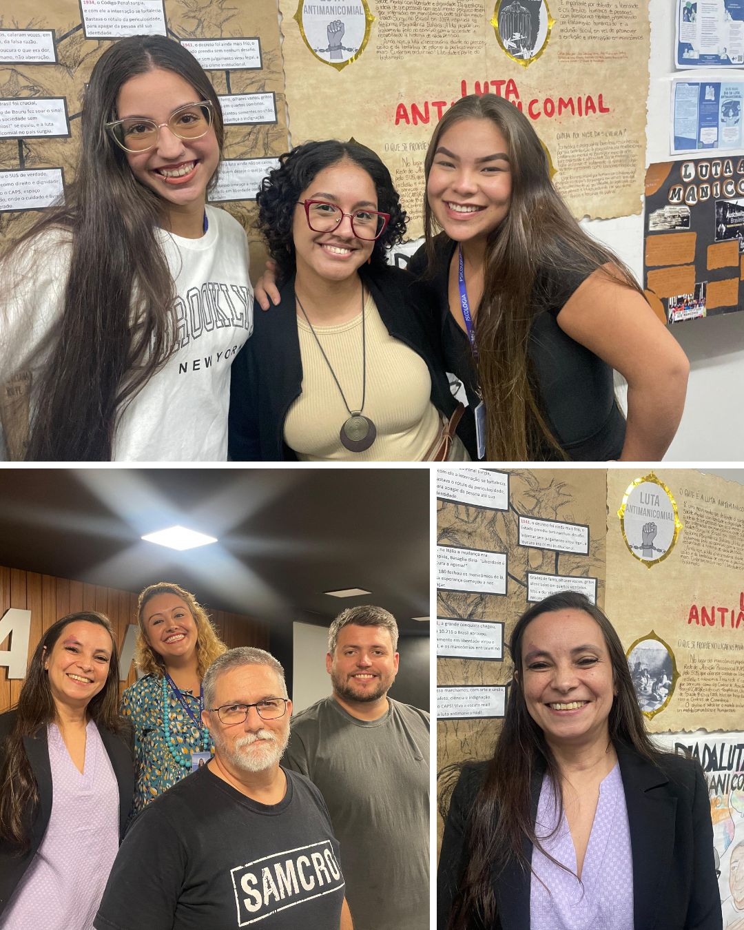 Participaram do evento os professores Prof. Me. Scheila Leandro, Prof. Me. Victor Hugo Rodrigues Medeiros e Prof. Me. Flávio Marino Greggio. O curso de Psicologia da Unaerp Guarujá é coordenado pelo Prof. Me. Paulo Guilherme Muniz, que ressaltou a importância do tema para a formação dos alunos. “O tema vai ao encontro de vários componentes curriculares do nosso curso, como saúde coletiva, políticas públicas e atenção psicossocial. A formação em Psicologia precisa incluir o debate sobre os direitos das pessoas em sofrimento mental e a importância da rede substitutiva, como os CAPS e as residências terapêuticas.”