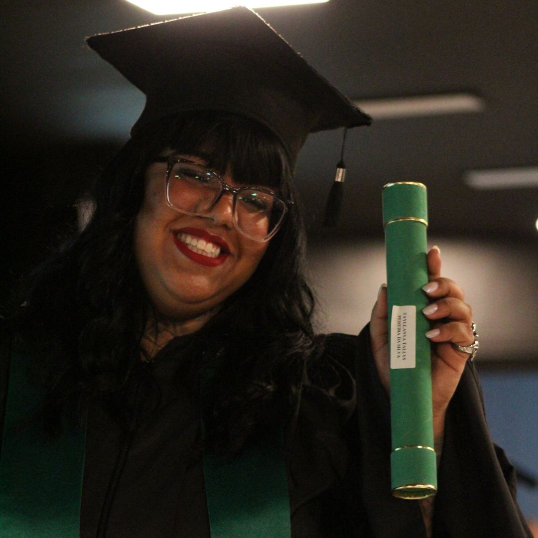 A formanda Talita Teles compartilhou sua emoção e gratidão: “É a realização de um sonho e um dia muito especial. Sou grata por ter chegado até aqui e também à Unaerp, que nos proporcionou tantas experiências valiosas. A caminhada foi desafiadora, mas sempre acreditei que coisas boas viriam, como um bom emprego e crescimento profissional. Estou otimista quanto ao futuro.”