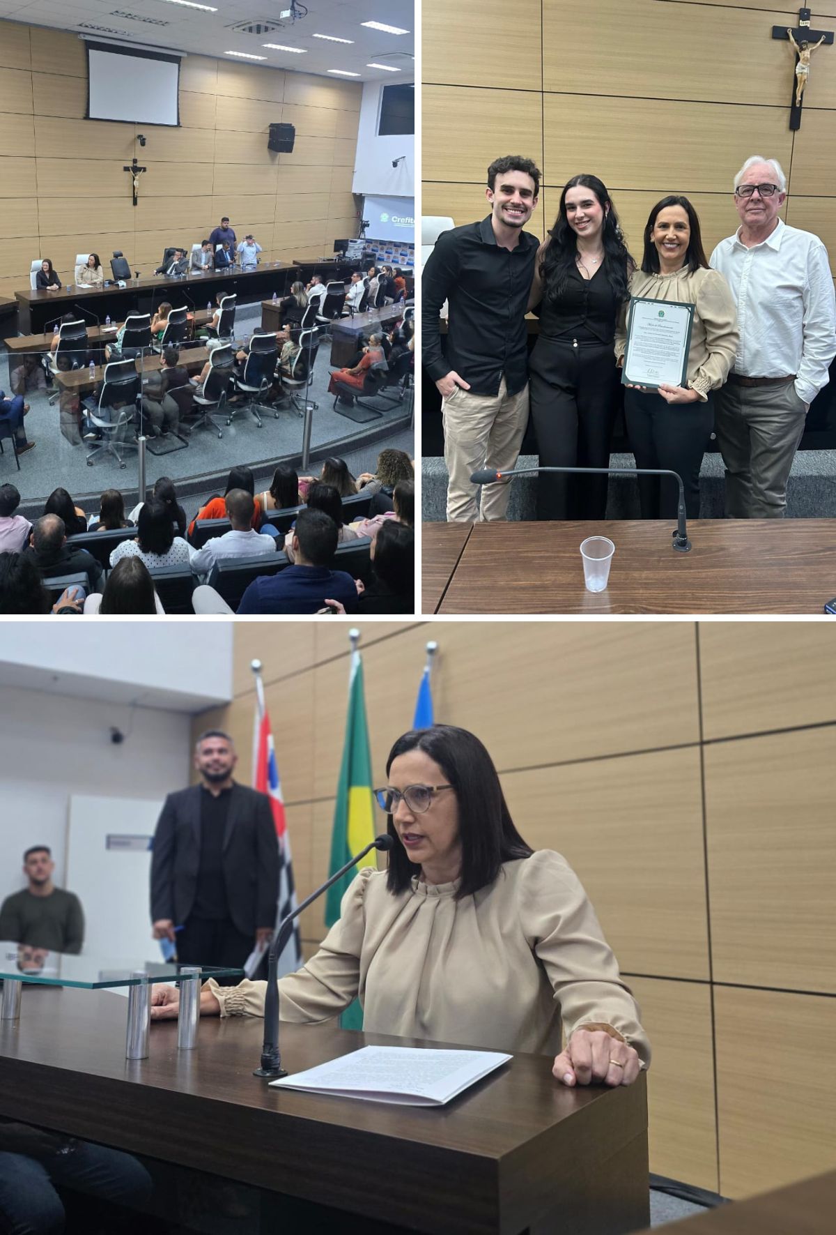 A Profa. Dra. Nazareti Pereira Ferreira Alves, supervisora acadêmica da Unaerp Guarujá, recebeu nesta quarta-feira (10) uma Moção de Reconhecimento concedida pelo Conselho Regional de Fisioterapia da 3ª Região (CREFITO-3). A solenidade foi realizada na Câmara Municipal de Guarujá e integrou as comemorações dos 50 anos do Sistema COFFITO/CREFITOs.