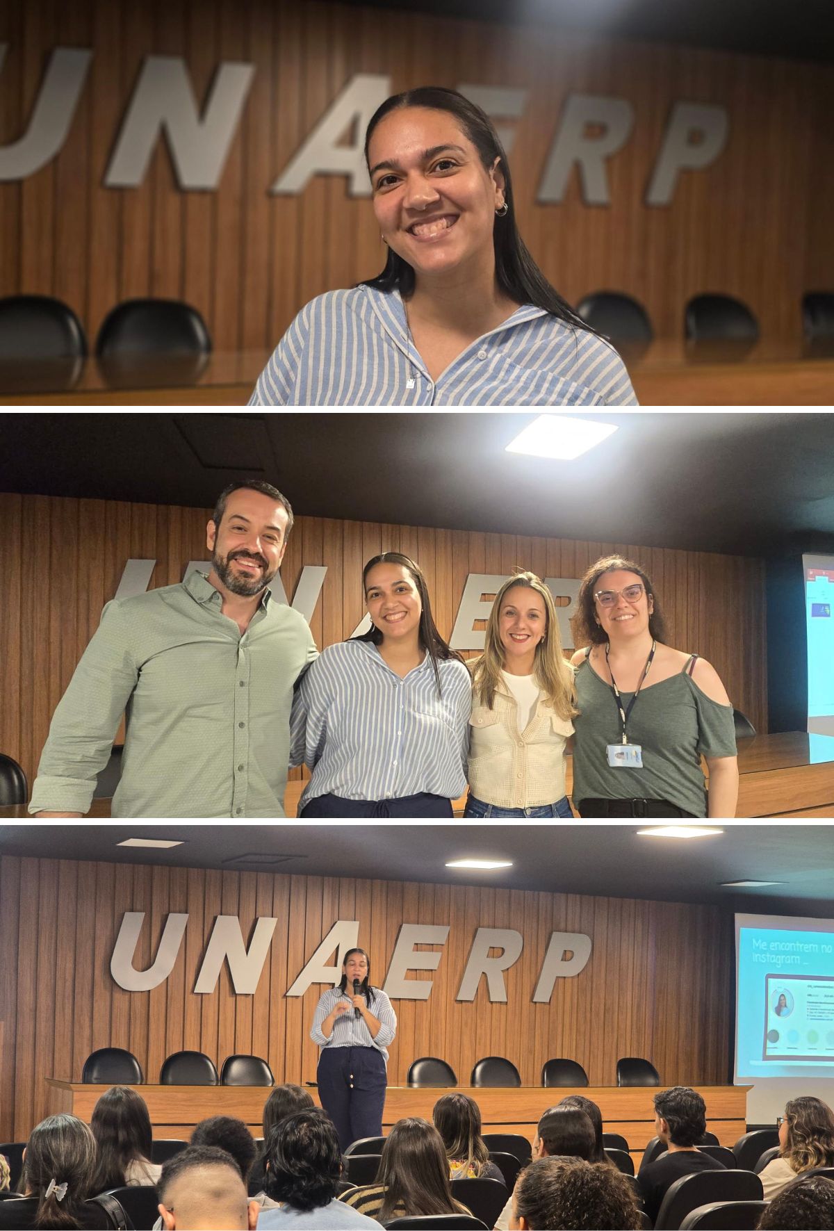 Nesta segunda-feira (13), a Unaerp Guarujá celebrou o Dia do Fisioterapeuta com a palestra “Do diagnóstico ao movimento: ciência, empatia e o impacto humano da fisioterapia neurofuncional”, ministrada pela fisioterapeuta Vanessa Jesus Rodrigues Teodoro. O evento reuniu alunos, docentes e a coordenadora do curso, Profa. Me. Ana Paula Siqueira, que prestigiaram a atividade.