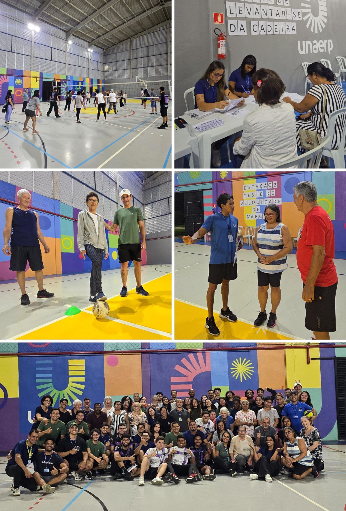 A programação envolveu diferentes etapas do curso: a sexta etapa apresentou uma palestra sobre osteoporose; a quarta etapa realizou avaliações físicas com foco na prevenção de quedas; e a segunda etapa conduziu vivências de Walking Futebol e Vôlei Adaptado — modalidades que estimulam o movimento e a socialização.