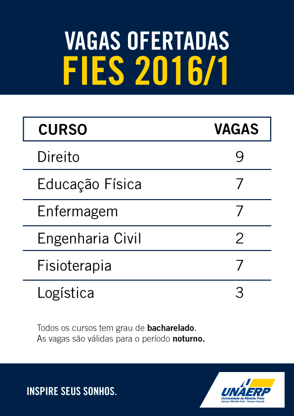 Vagas de cursos ofertadas pelo FIES 2016