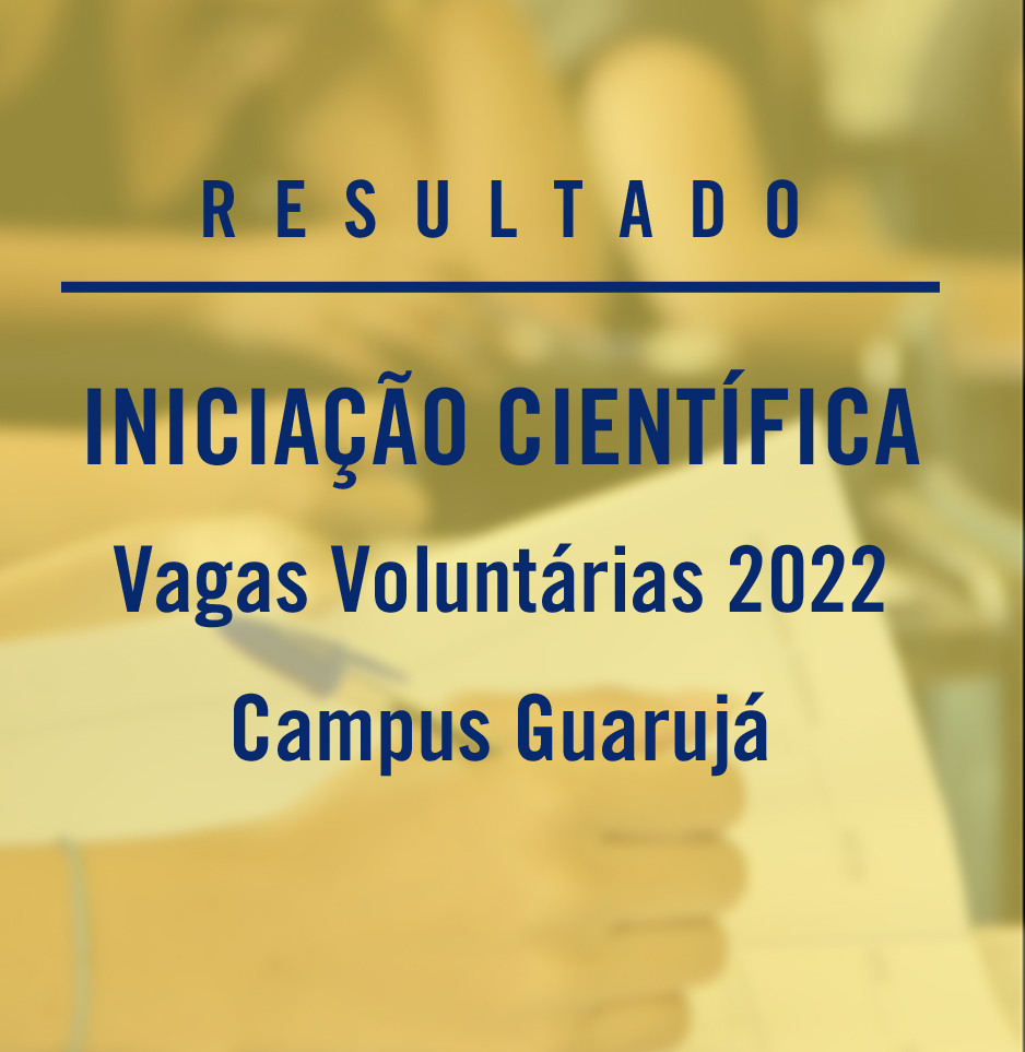 Resultado - Confira contemplados às vagas voluntárias de Iniciação Científica Confira os projetos aprovados, inscritos por alunos do Campus Guarujá.