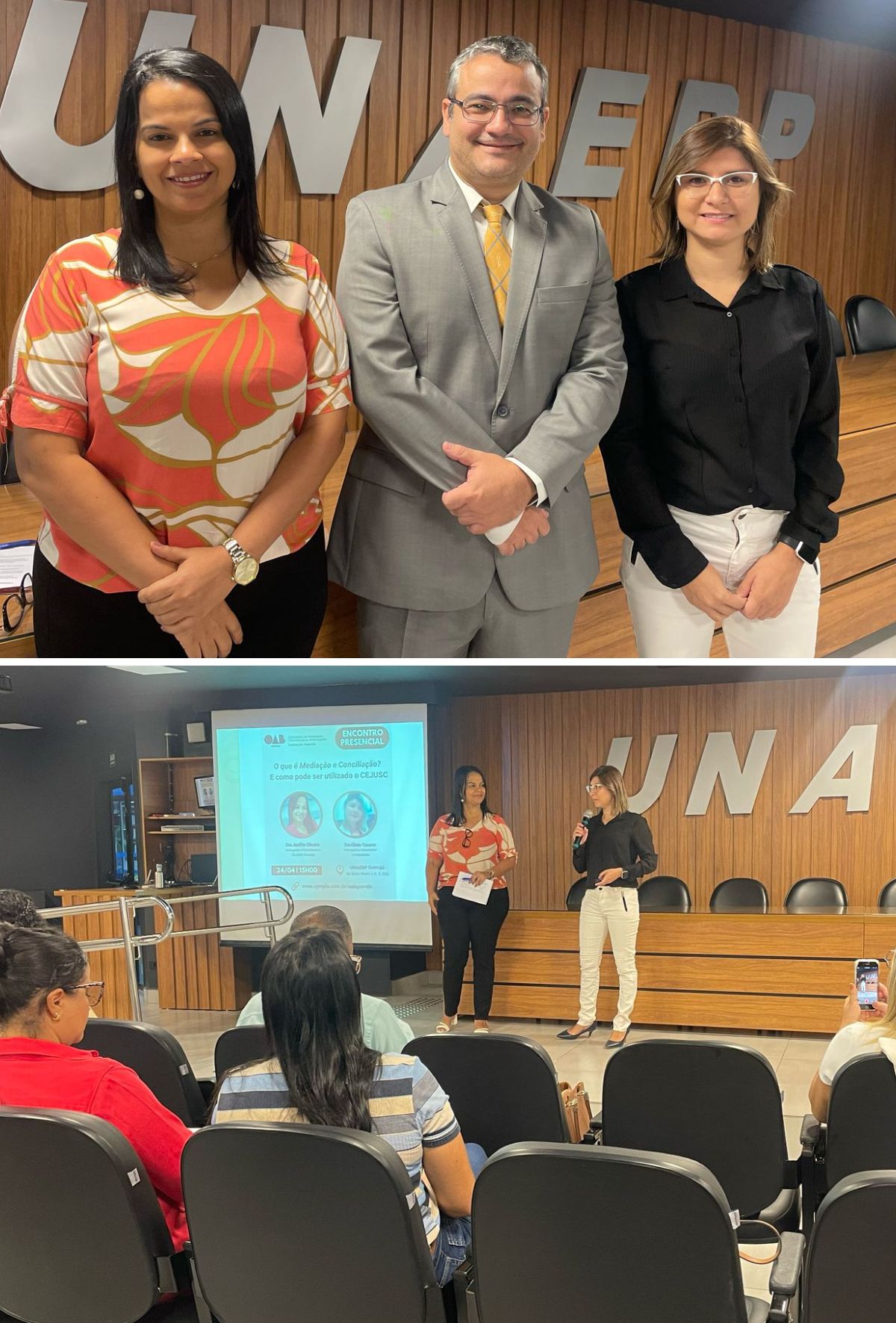 A Unaerp Guarujá sediou, na última quinta-feira (24), o evento “O que é Mediação e Conciliação? E como pode ser utilizado o CEJUSC?”, promovido pela Comissão de Mediação, Conciliação e Arbitragem da OAB São Paulo – Subseção Guarujá. A iniciativa teve como objetivo aproximar a comunidade dos métodos colaborativos de resolução de conflitos.