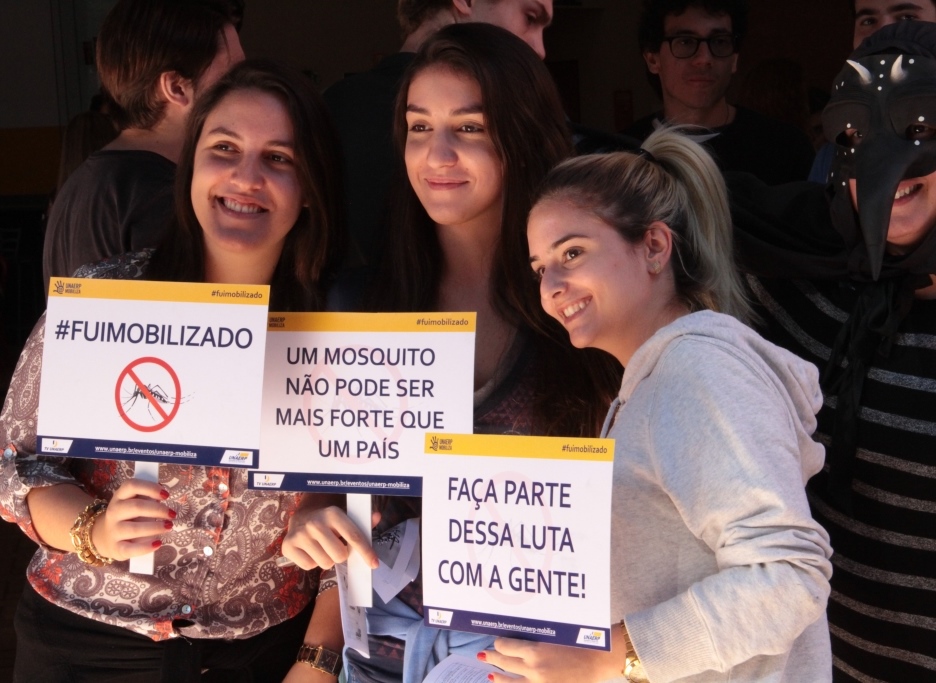 Nos dias 5 e 6 de abril, alunos dos cursos de Jornalismo e Publicidade e Propaganda, a Rádio Unaerp e a TV Unaerp promoveram uma ação contra o mosquito Aedes aegypti. Parte das ações da Campanha Unaerp Mobiliza - Combate à Dengue, a intervenção foi realizada no centro de convivência e nas salas de aula, com teatro e distribuição de folders informativos.
