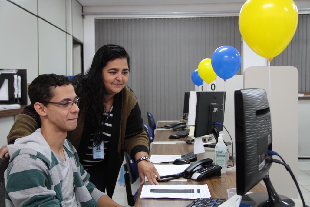 Uslaine durante o trabalho na Central de Benefícios da Unaerp