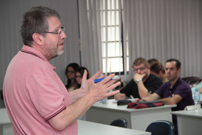 Eric veio à convite da professora Maria Cristina Tárega, que também leciona no Programa de Mestrado. "Como essas duas disciplinas abordadas pelo Eric estão ligadas à minha, ele fez as primeras 20 horas de aula e eu farei as outras 10, para complementar a carga horária e realizar a avaliação", explicou.