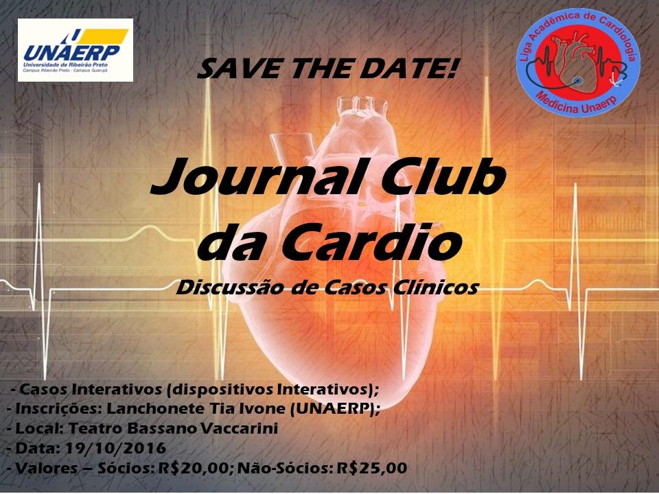 Acontece no próximo dia 19 de outubro o Journal Club da Cardio, organizado pela Liga Acadêmica de Cardiologia do curso de Medicina da Unaerp.