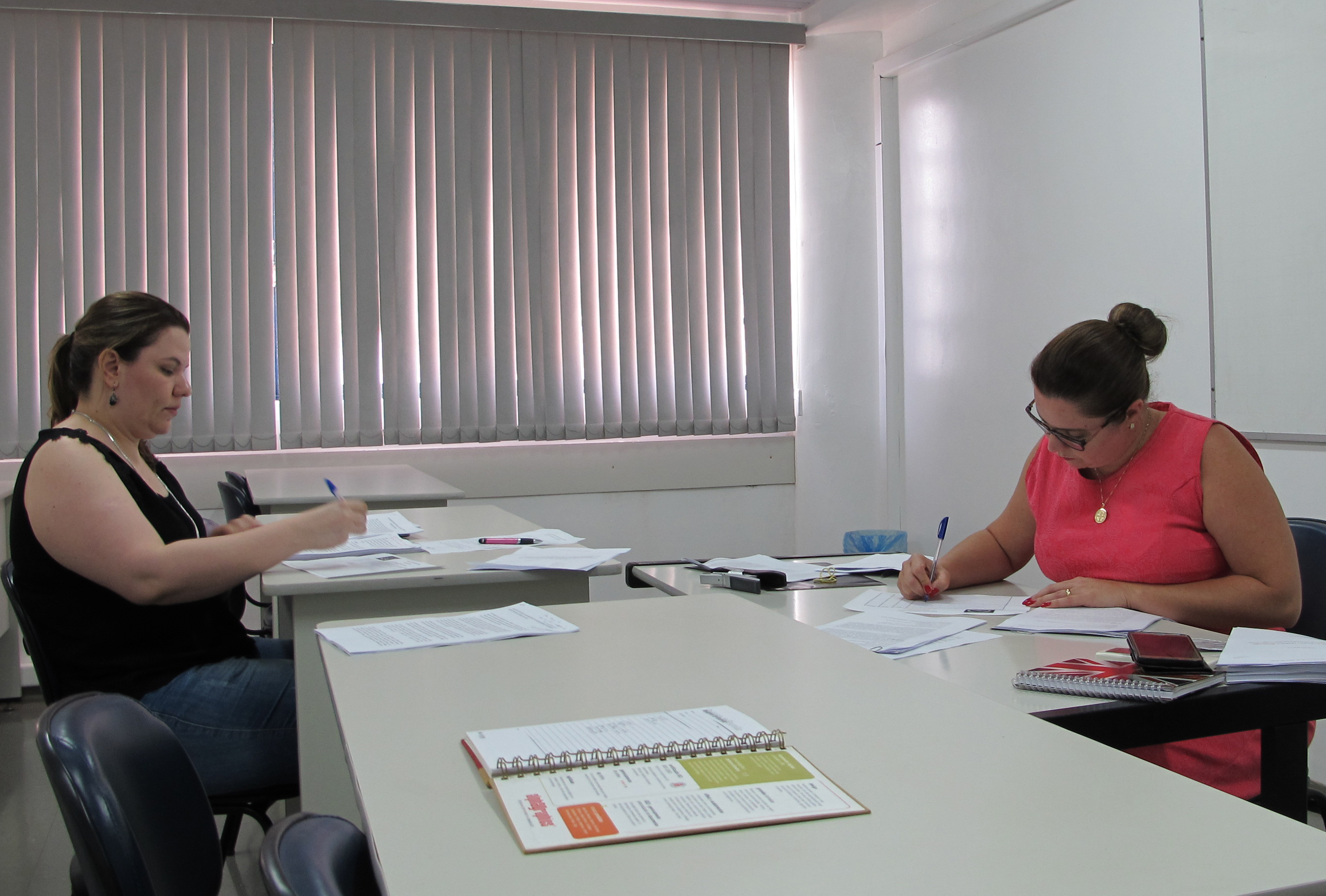 As professoras Juliana de Paula B. Puig e Alessandra Fracaroli Perez durante avaliação dos trabalhos inscritos no 17º CONIC