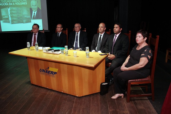 Prof. Sebastião Sérgio da Silveira, Prof. Sebastião Donizete Lopes dos Santos, Prof. Silvio Venosa, Prof. João Batista de Araújo Júnior, Tales Hebert Fernandes Moraes - Presidente da Atlética do Direito e Dra. Fátima Ap. Gallo do Escritório de Assistência Jurídica