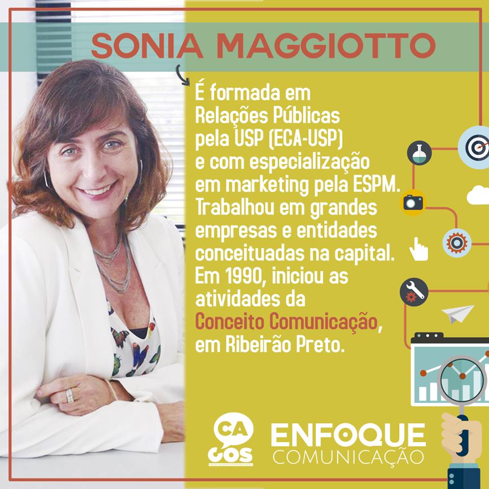 Palestrante: Sonia Maggiotto é diretora da Conceito Comunicação, uma das agências mais tradicionais do ramo de comunicação corporativa em Ribeirão Preto. No seu portfólio de clientes, nomes como McDonald’s, Unimed Ribeirão Preto e Coca-Cola são destaques.