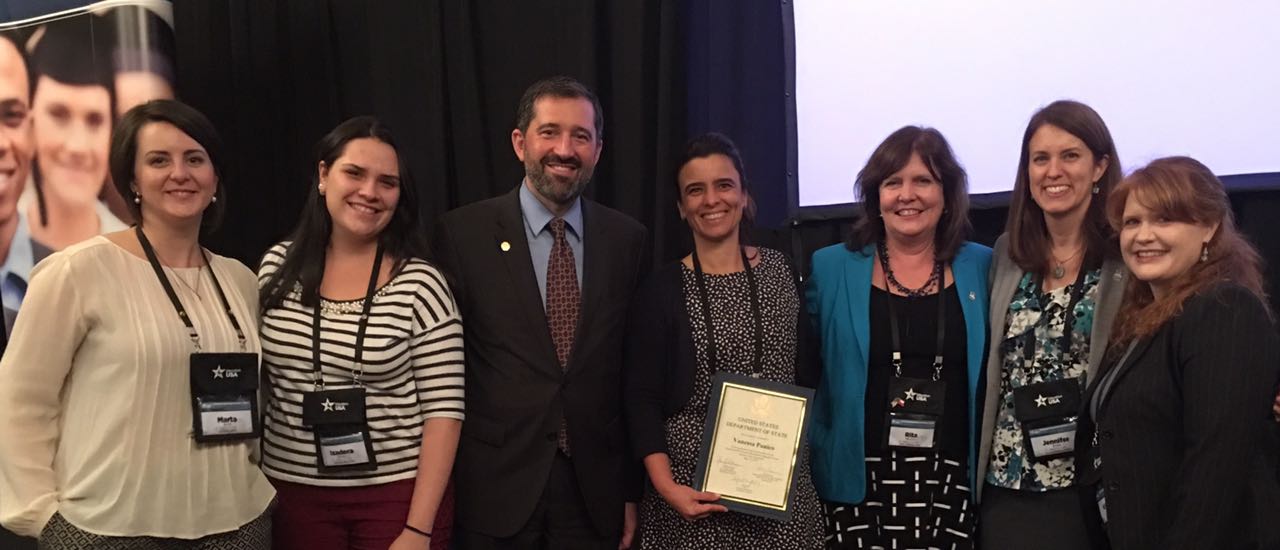 Da esquerda para a direita: Marta Bidoli - EducationUSA Brazil Country Coordinator; Izadora de Marco - EducationUSA Adviser; Alfred Boll - Branch Chief, EducationUSA Bureau of Educational and Cultural Affairs, US Department of State; Vanessa Bonini Panico - EducationUSA Adiviser; Rita Moriconi - EducationUSA Southern Cone; e Jennifer Brown, Program Officer, EducationUSA, Bureau of Educational and Cultural Affairs, US Department os State