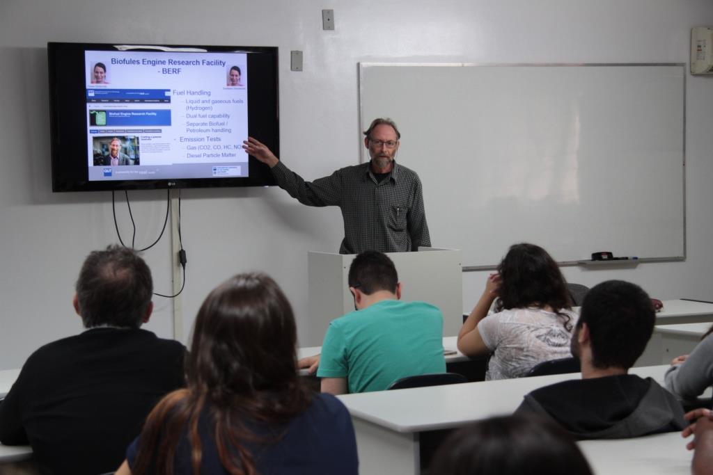 No evento, o professor Brown apresentou alguns dos temas que estuda na QUT com o intuito de incentivar a produção de pesquisas científicas, a troca de experiências e conhecimentos na área, além de promover as possibilidades de intercâmbio entre as instituições. "Conversei com os alunos sobre biocombustíveis como, por exemplo, o etanol e o biodiesel, e os efeitos que eles provocam quando queimados e emitidos para a atmosfera. Abordei esses dois tópicos principais, energia e meio ambiente. Também debatemos sobre a importância de intercâmbios, pois é uma experiência que ajuda a expandir a mente e a instigar novas ideias, novos conhecimentos e ter contato com outras culturas", contou o professor Brown.