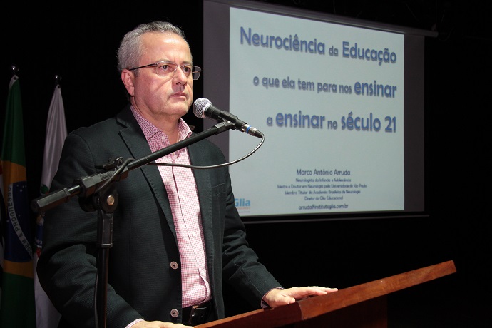 Com o tema “MELHORES PRÁTICAS - APRENDENDO COM A PRÓPRIA EXPERIÊNCIA” a comissão organizadora do Programa convidou para abrir o evento o doutor Marco Antonio Arruda, Neurologista da Infância e Adolescência, que ministrou a palestra “Neurociência da Educação: o que ela tem para nos Ensinar a Ensinar no Século 21”, focada no avanço das últimas décadas no conhecimento sobre o cérebro. “Minha ideia é aproveitar o evento, dirigido à capacitação, para provocar uma reflexão sobre a necessidade de mudanças nas práticas pedagógicas, mostrar evidencias dos avanços que houveram nessa área e também como podemos entender melhor o cérebro desse jovem do século XXI, para que assim, a gente consiga contemplar e tornar o ensino mais eficaz”, explica.