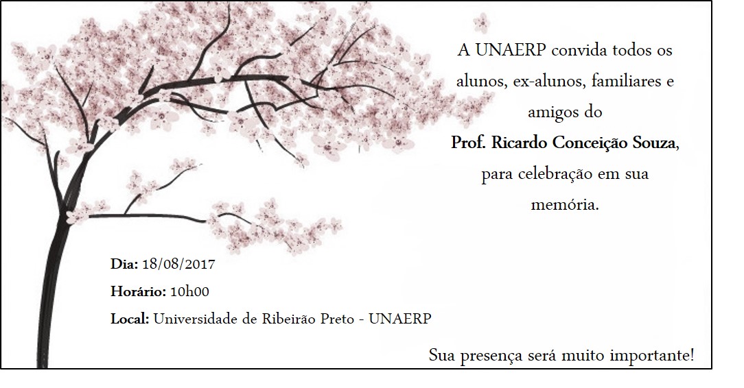 A Unaerp convida a todos para a celebração, em memória, do saudoso professor Ricardo Conceição Souza, que nos deixou no último domingo, 13/08.