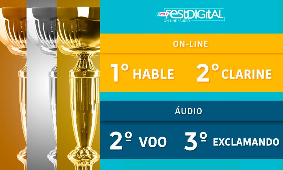Neste ano o curso foi premiado com o ouro e a prata na modalidade on-line, com projetos da agência Hable e Clarine. Na modalidade áudios, os alunos da agência Voo ficaram com a prata e a equipe da Exclamando ficou com o bronze.