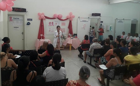 No dia 24, a equipe Unaerp que atua na Unidade de Saúde da Família (USF) do Jardim Marchesi em parceria com os profissionais da Unidade, realizou uma caminhada pelo Bairro para chamar a atenção da população para o tema Câncer de Mama.