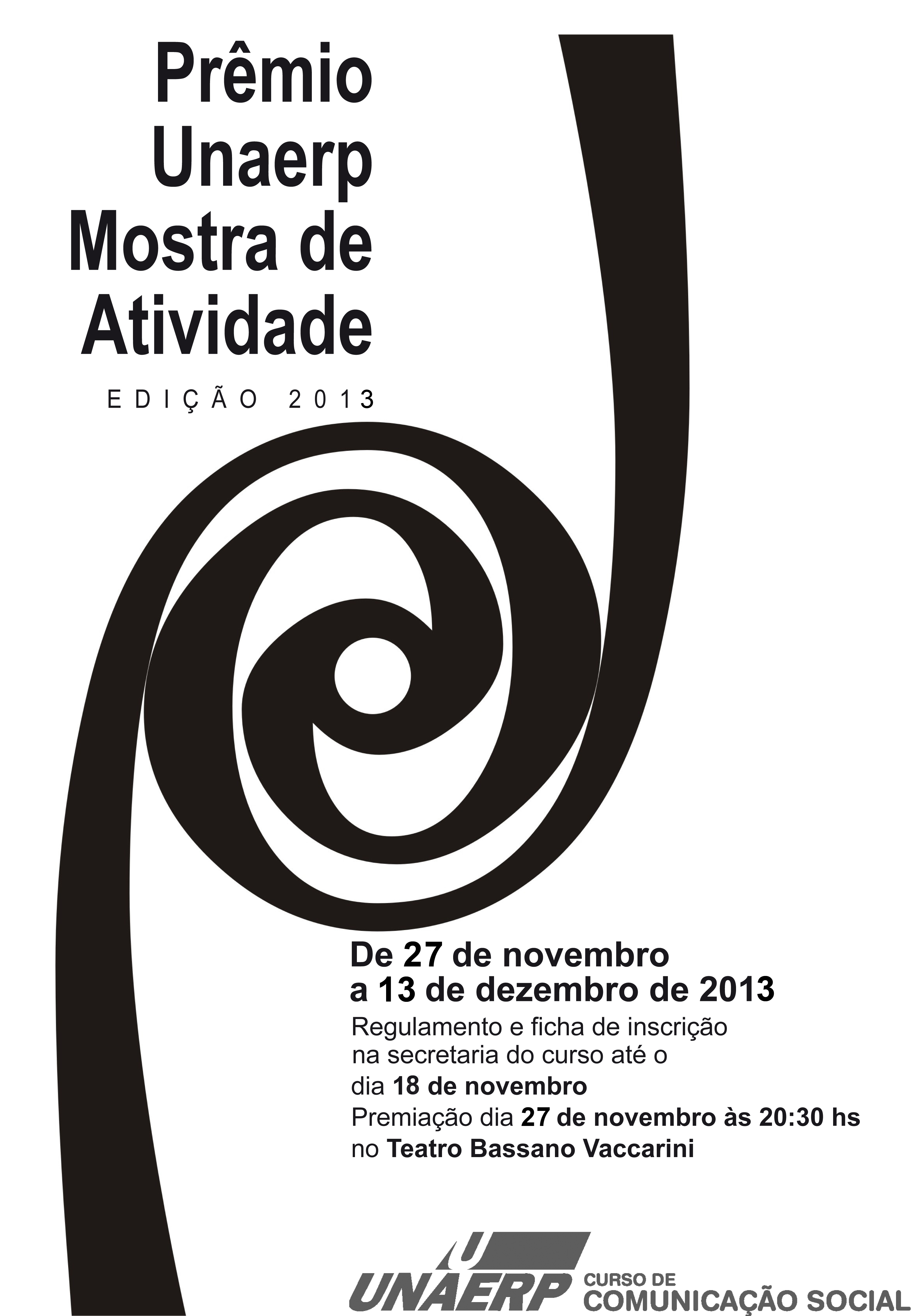 Entre os dias 27 de novembro e 13 de dezembro acontece a Mostra de Atividade realizada pelos cursos de Comunicação Social da Unaerp-Ribeirão Preto. O evento visa estimular os alunos e aproximá-los do mercado de trabalho.