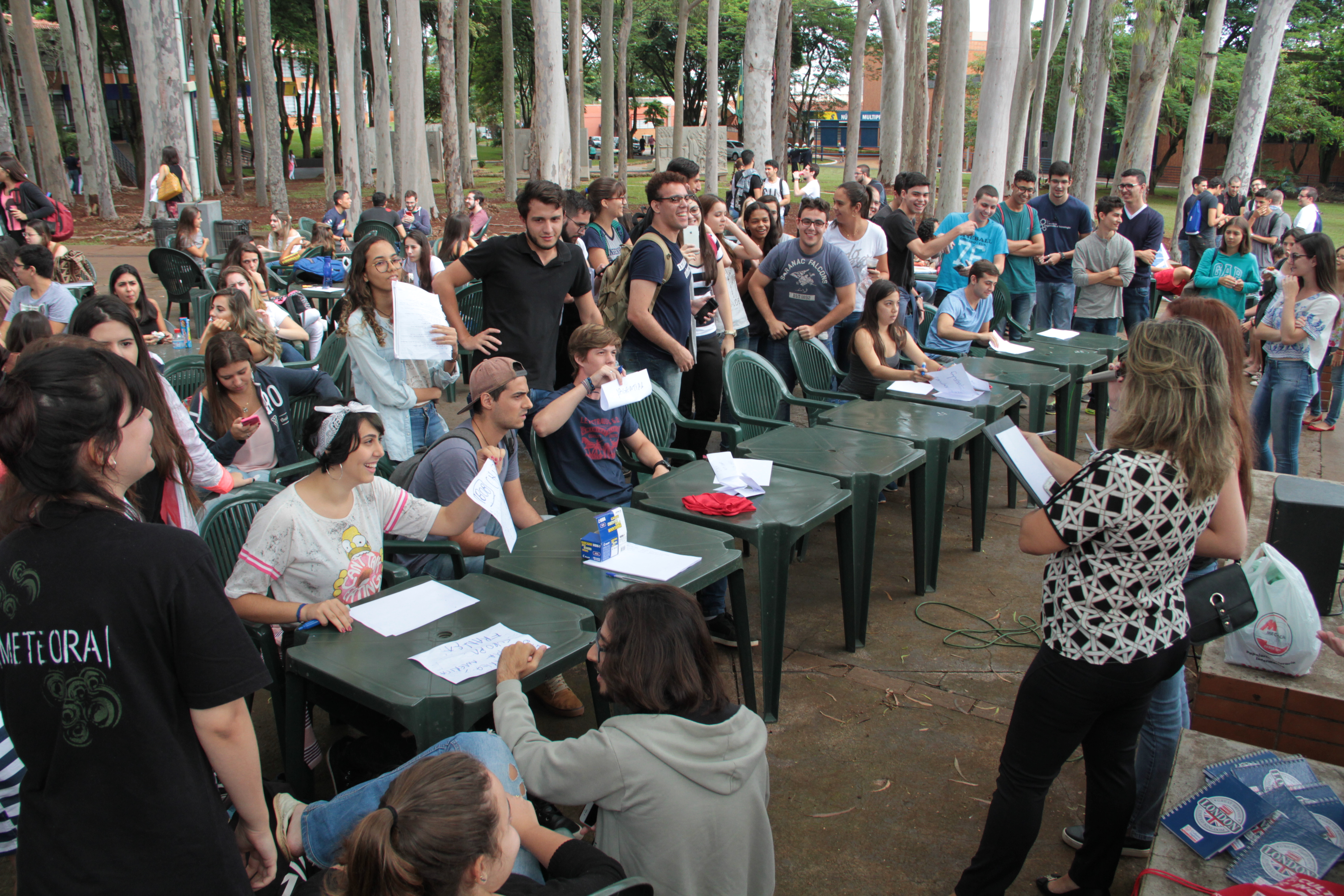 Alunos durante o Quizz Universalize, que promove a participação e interação entre calouros e veteranos