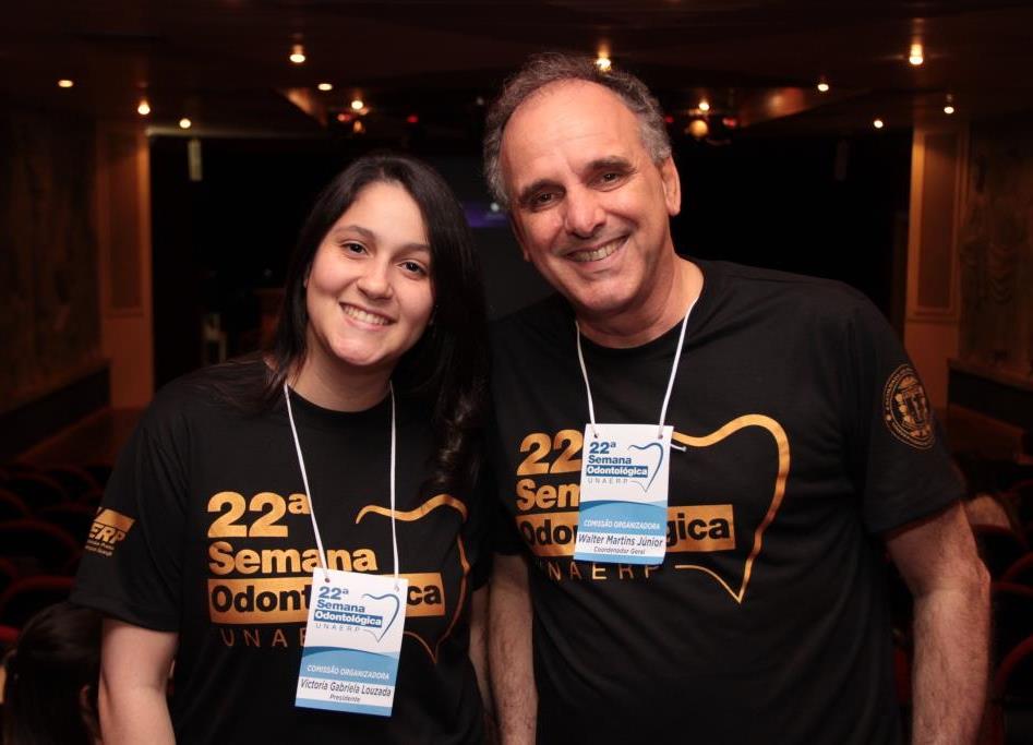 A aluna de Odontologia, Victoria Gabriela Louzada e o professor Walter Martins Junior, membros da comissão organizadora do evento